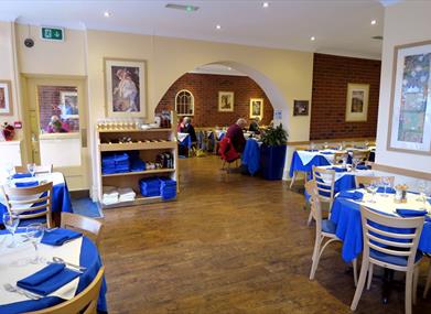 Authentisches italienisches Restaurant mit Pasta, Pizza, Fleisch- und Fischgerichten, ergänzt durch eine gute Auswahl an italienischen Weinen.Probieren Sie eine unserer besten hausgemachten Pizzen in der lebhaften Atmosphäre unseres Restaurants oder etwas anderes aus unserer großen und umfangreichen Speisekarte mit über hundert hausgemachten Gerichten. Wir haben auch vegane, glutenfreie und Kindermenüs. Wir sind nur wenige Gehminuten vom Einkaufszentrum The Beacon, Tennisplätzen und allen wichtigen Theatern entfernt.