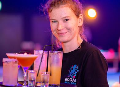 Are you ready to feel the BOOM? Get set for the time of your life, Battle it out with a mate or a date with our selection of games including Axe Throwing, Crazier Golf, Augmented Reality Darts, Beer Pong, Shuffleboard & much more! Why are you still reading this? It’s time to get booking.