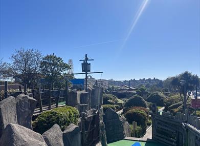 Putten Sie über und unter Brücken, durch Höhlen mit außergewöhnlicher Themengestaltung und bezaubernder Piratengeschichte.