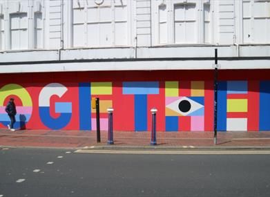 If there has been one message and one lesson throughout the last year, the importance of working, living and socialising ‘together’ has got to be it! With this in mind, Eastbourne BID worked with VOLT Gallery to commission Will Mower to design and create ‘Together’, the artwork on the hoardings outside TJ Hughes which was installed on Tuesday, 18th May.