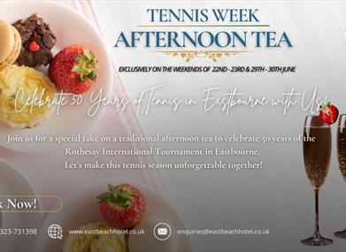 Celebrate 50 years of the Rothesay International Tournament in Eastbourne at the East Beach Hotel with our exclusive limited-edition Tennis Afternoon Tea. Enjoy an array of bite-sized treats paired with a wide selection of teas and coffees. Don't miss our new clotted cream gin and tonic, a perfect complement to the afternoon tea experience.